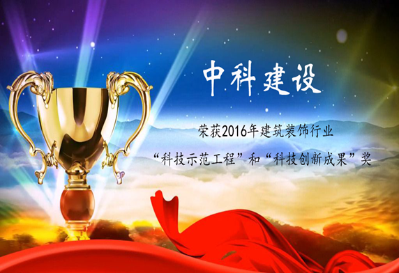 喜訊:中科建設榮獲2016年建筑裝飾行業“科技示范工程”和“科技創新成果”獎